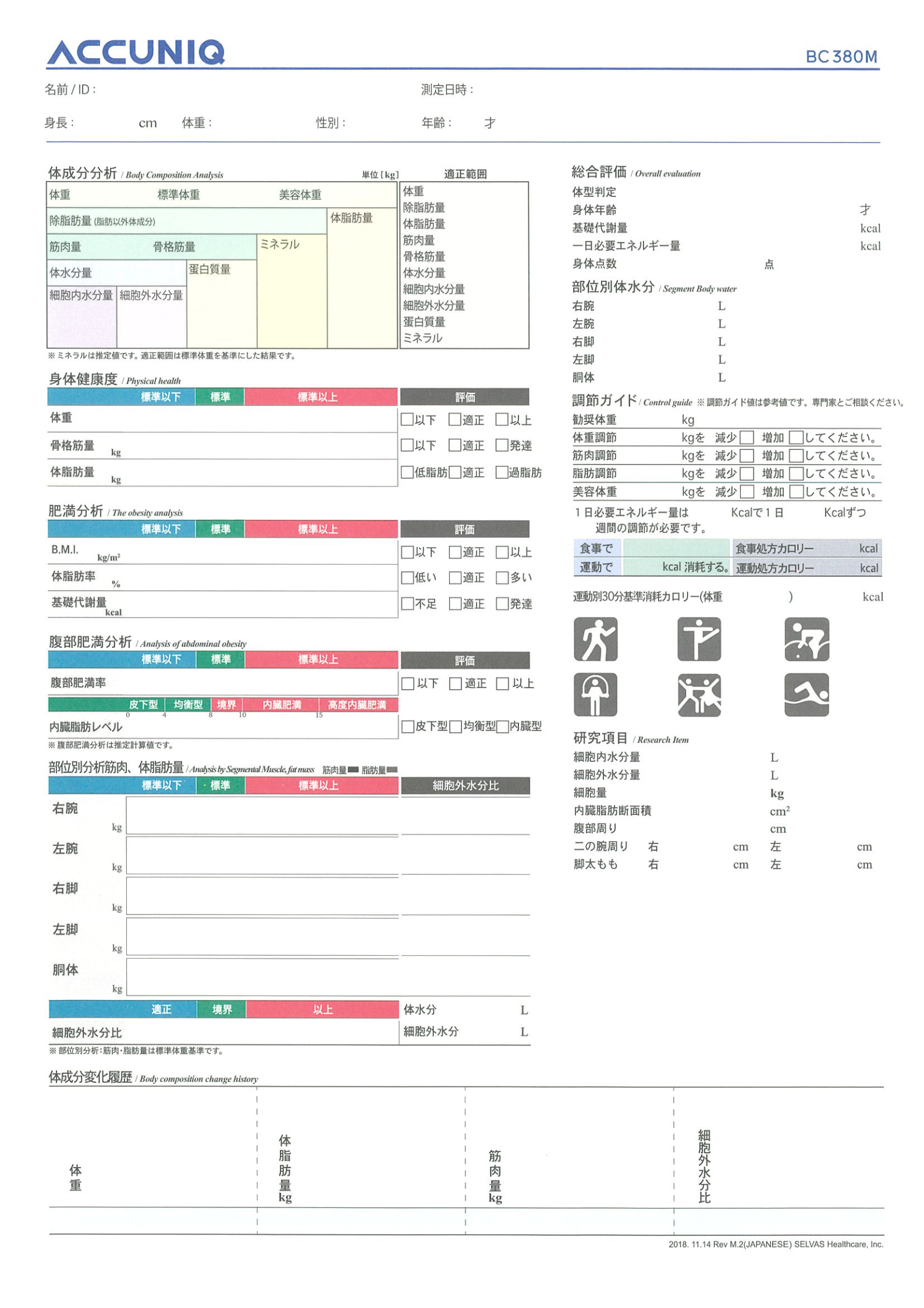 いわば、体組成は体の状態や疾患を反映するものさしです。定期的な測定で生活習慣を見直すきっかけにしてください。また、EMSの効果判定にも利用しています。